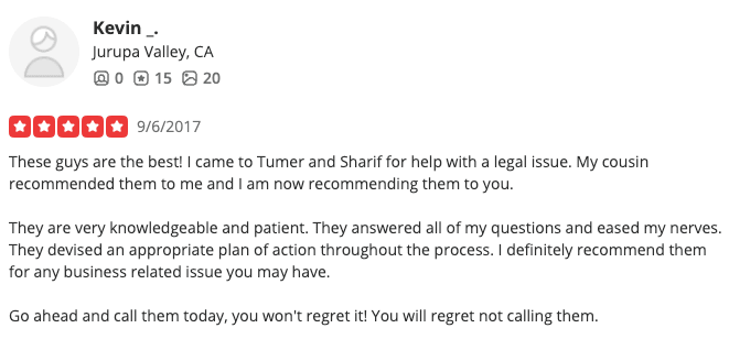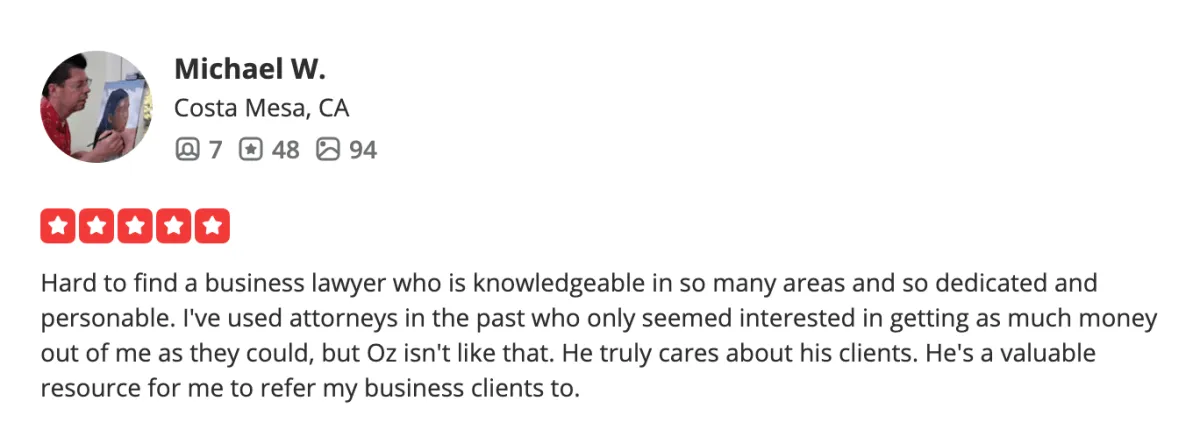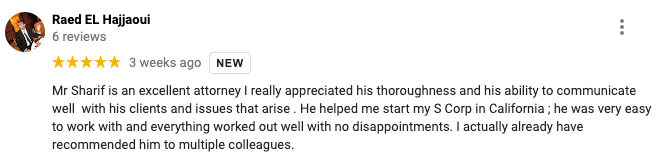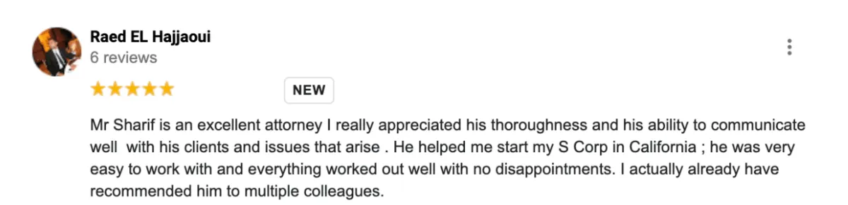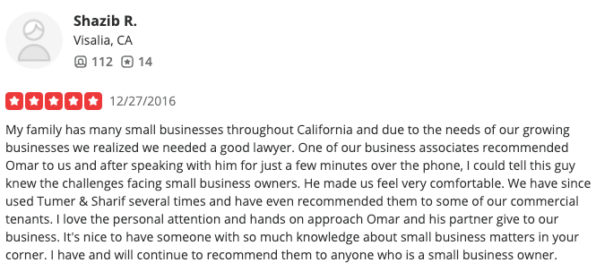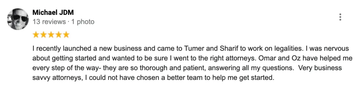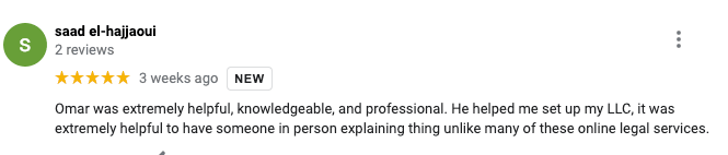 Omar has helped thousands of businesses start up their business. He is easy to talk to and he and his team respond quickly to inquiries. No question is too small or unimportant, so do not ever hesitate to gain clarity and peace of mind with your legal questions.